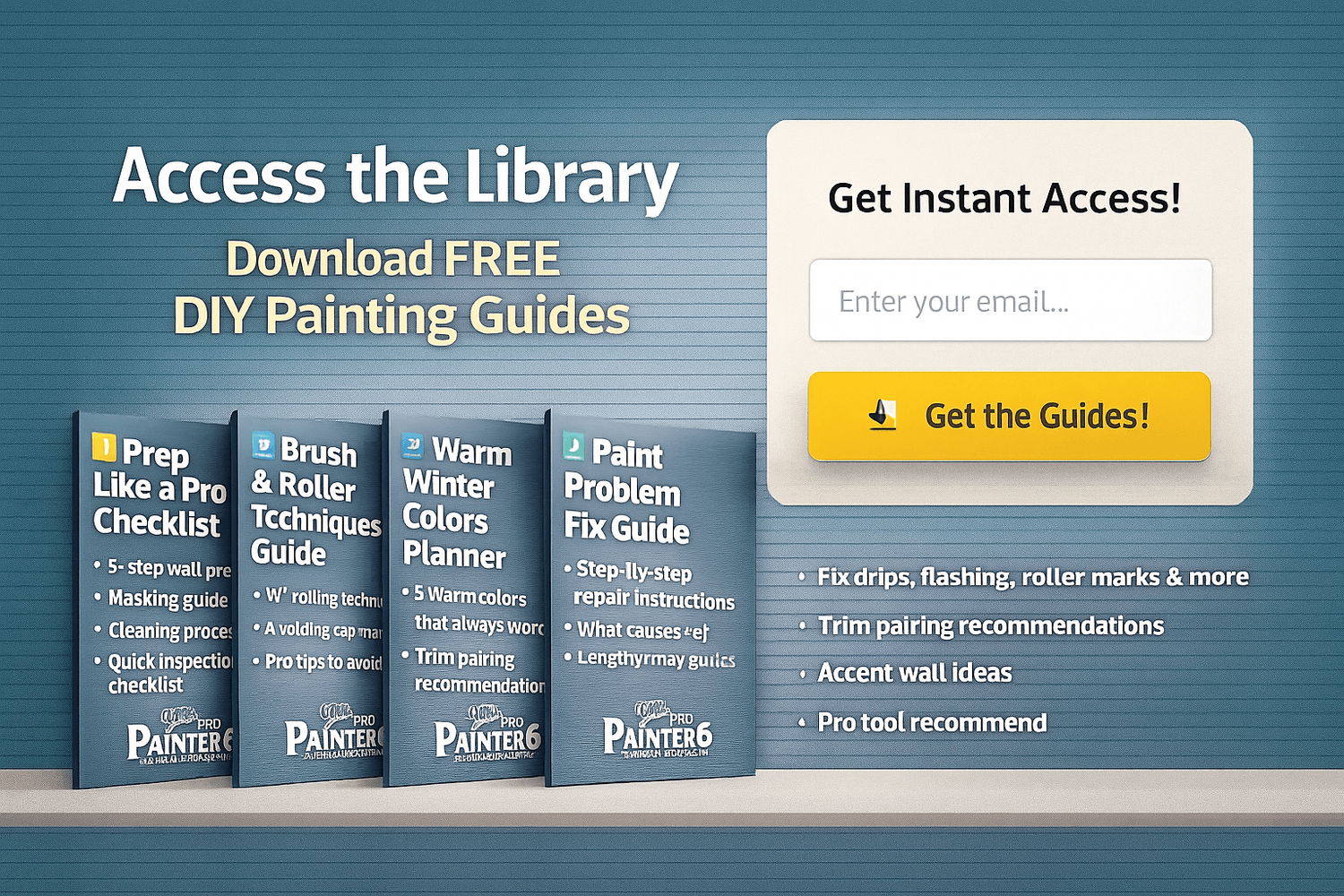 Download all current + future guides in one place — Prep, Brush & Roller, Winter Colors, Paint Fixes, and more. Join free!